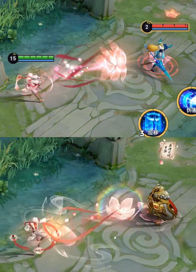 除了出场动画之外,特效也进行了调整,不少特效都加上了拖尾和光晕,使得整个皮肤看起来梦幻了不少。尤其是一技能和二技能的特效调整了不少,飘带加粗加长,还有花瓣围绕在诸葛亮的身边,视觉效果上看起来特别棒。
